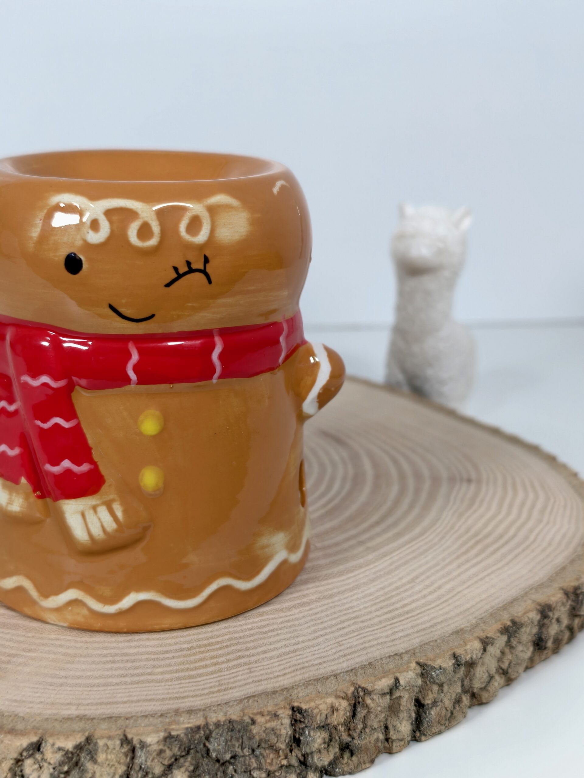 Endulza tus días (y tus noches) con este adorable quemador de wax melts navideño con forma de muñeco de jengibre.